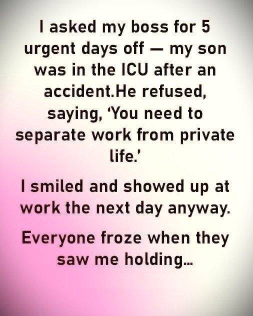 I requested five urgent days off—my son was in the ICU after an accident. My boss’s reply was icy: “You need to separate work from your personal life.”