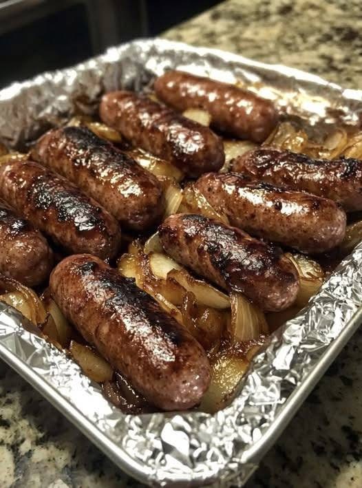 This dish is a classic comfort food made easy: juicy sausages roasted until golden, nestled in slowly caramelized onions and finished with a rich, sticky glaze. Everything cooks together on one tray, allowing the flavors to mingle and intensify. The result is savory, sweet, and deeply satisfying, perfect for family dinners, gatherings, or simple meal prep.