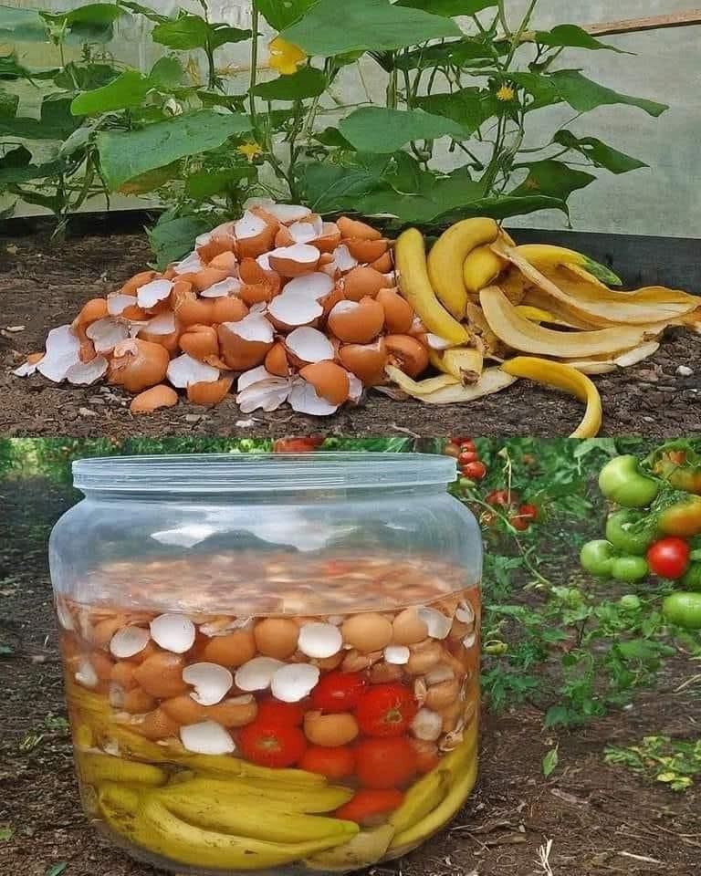 In a world where food waste is becoming a serious environmental issue, simple kitchen scraps like eggshells and banana peels can become powerful tools for gardeners. The image above perfectly illustrates a natural, low-cost method of recycling organic waste and turning it into nutrient-rich fertilizer for plants. This practice not only reduces waste but also boosts soil health and plant productivity in an eco-friendly way.