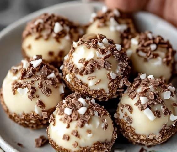 - Dip each chilled coconut ball into the melted white chocolate.