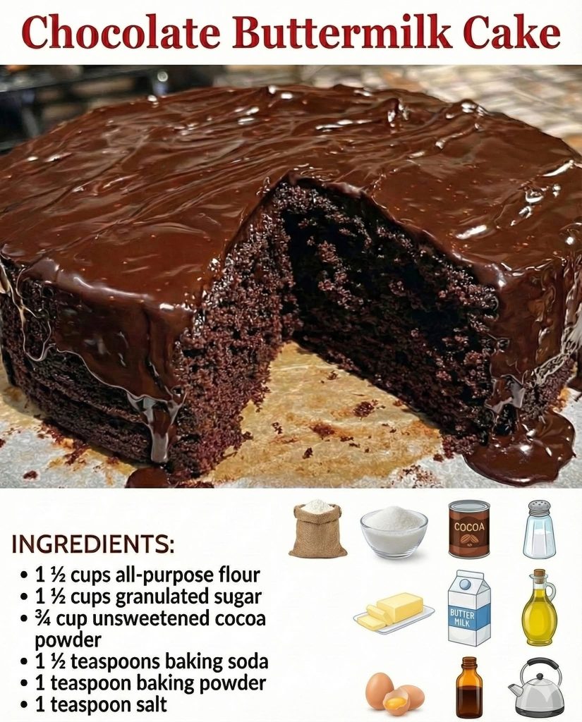 This Chocolate Buttermilk Cake is rich, deeply chocolatey, incredibly moist, and tender thanks to the buttermilk. It has a soft crumb, intense cocoa flavor, and stays moist for days. Perfect for birthdays, celebrations, or anytime you want a classic homemade chocolate cake that never fails.