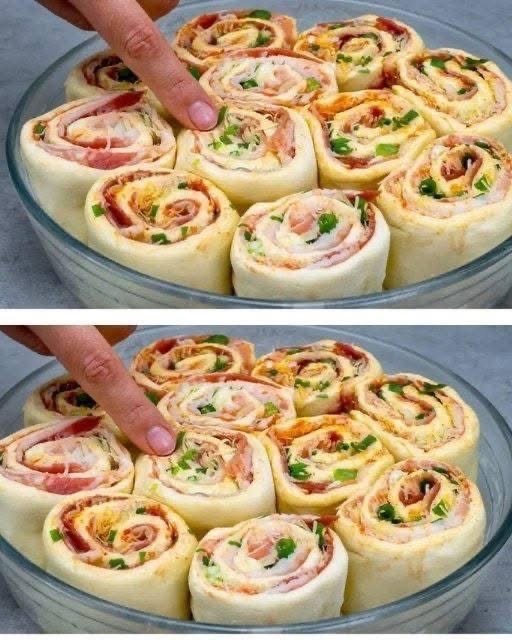 - Place rolls cut-side up in a greased baking dish, slightly touching.