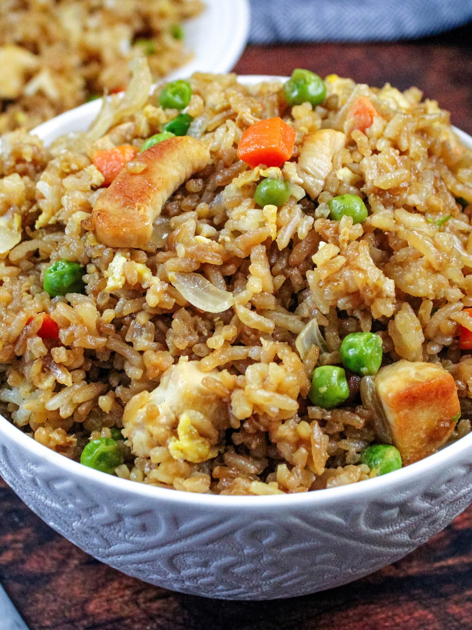 This homemade chicken fried rice is better than takeout — full of flavor, perfectly seasoned, and loaded with tender chicken, fluffy rice, vegetables, and scrambled eggs. It’s the perfect way to use leftover rice and comes together quickly in one pan. Every bite is savory, slightly smoky, and packed with texture.
