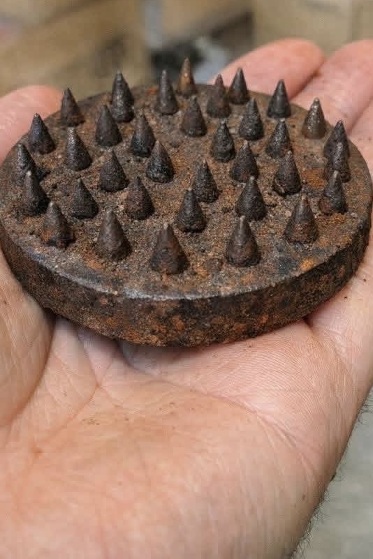 Clearing out the attic and found this heavy metal base covered in sharp spikes. It’s rusted and looks dangerous. What is this