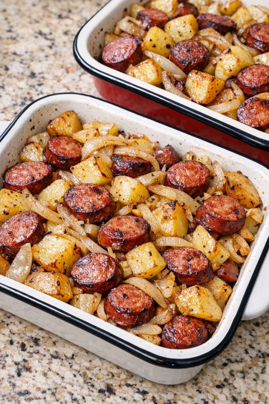 - Taste a potato piece before serving—adjust salt/pepper if needed (sausage saltiness varies).