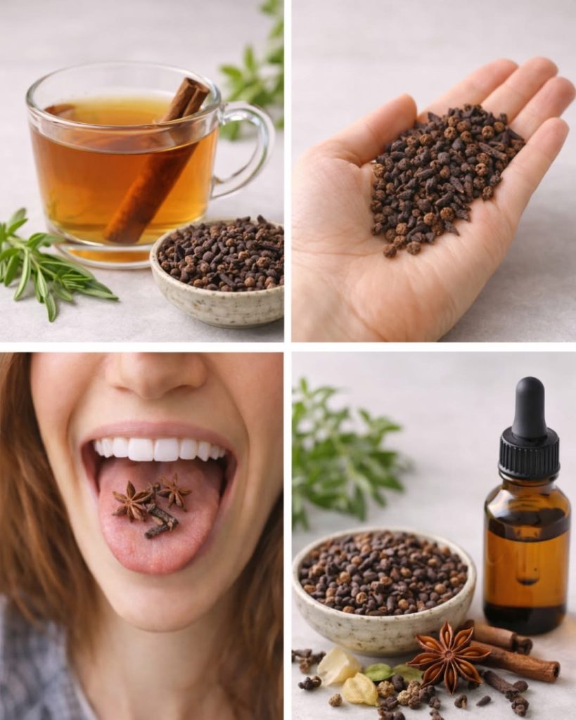 Clove Tea: Steep 3–5 whole cloves in hot water for a soothing infusion. You can add cinnamon or lemon for extra flavor.