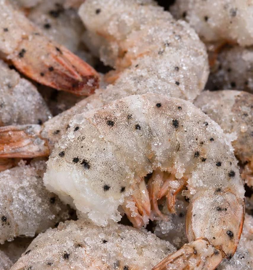 Even though freezing shrimp halts the growth of bacteria and spoilage, it doesn’t stop enzymatic processes like melanosis. If shrimp are not treated with preservatives before freezing, oxidation can continue, leading to black spots even in frozen shrimp.