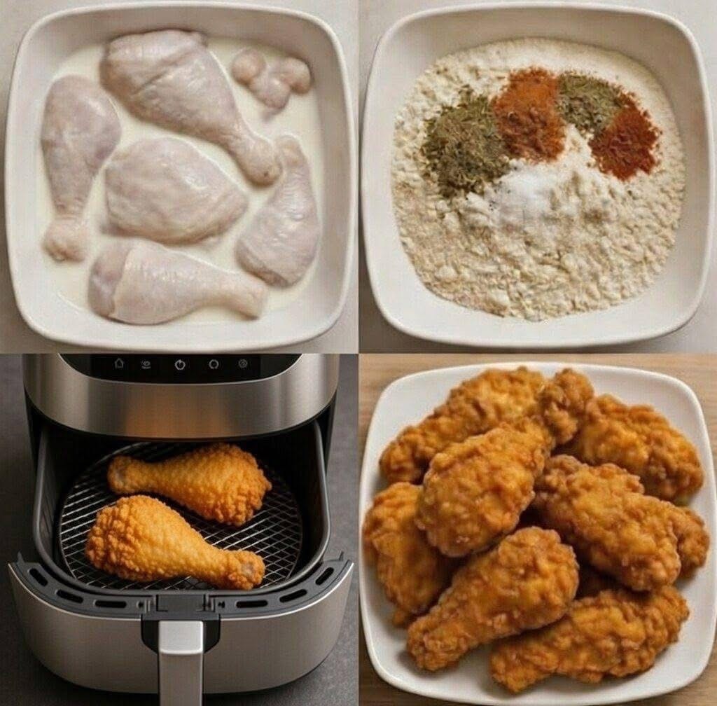 This recipe delivers perfectly crispy chicken drumsticks using an air fryer. Coated in a seasoned flour mixture and cooked to golden perfection, it offers the crunch of fried chicken with less oil and a lighter feel.