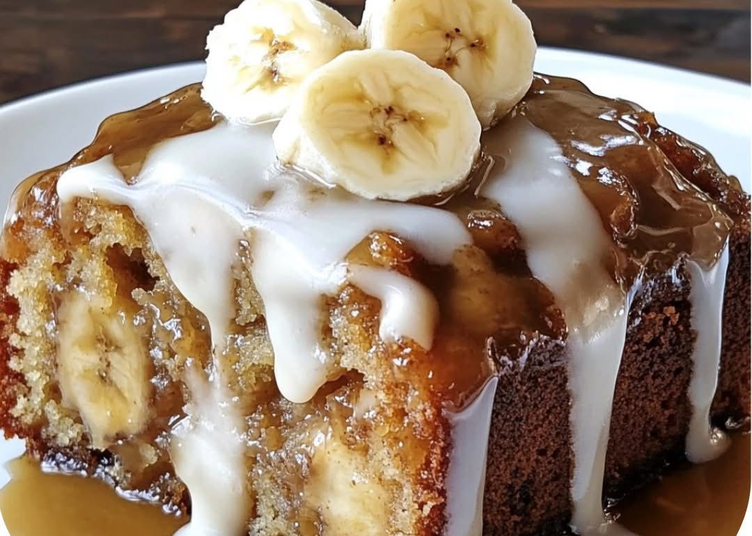 This soft and rich banana cake is the kind of dessert that melts in your mouth. The natural sweetness of ripe bananas combined with deep caramel flavor and a smooth creamy glaze makes it absolutely irresistible. Perfect for family gatherings or when you just want something comforting and homemade.