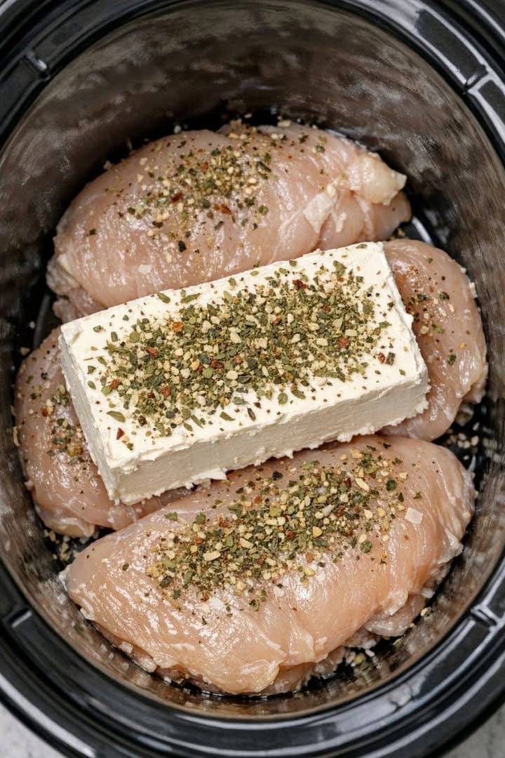 This slow cooker creamy Italian herb chicken is simple rich and full of flavor with minimal effort. A perfect cozy dish that tastes like you spent hours in the kitchen.