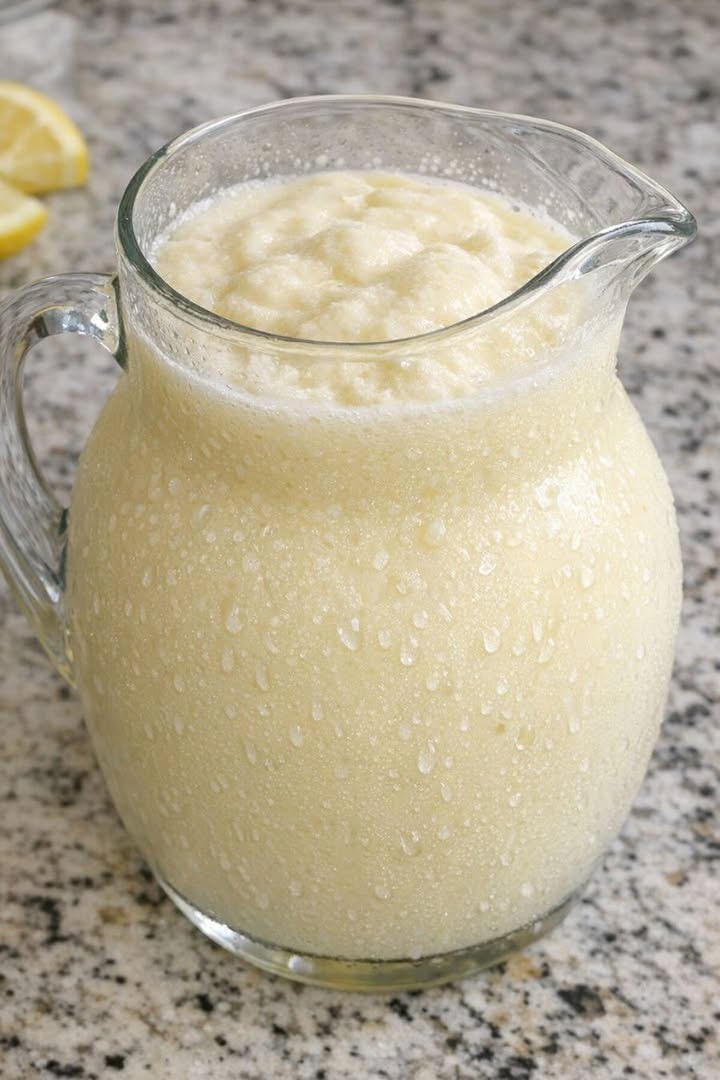 Chill a large glass pitcher in the refrigerator or freezer for 10–15 minutes so the frosted lemonade stays cold and creamy longer.
