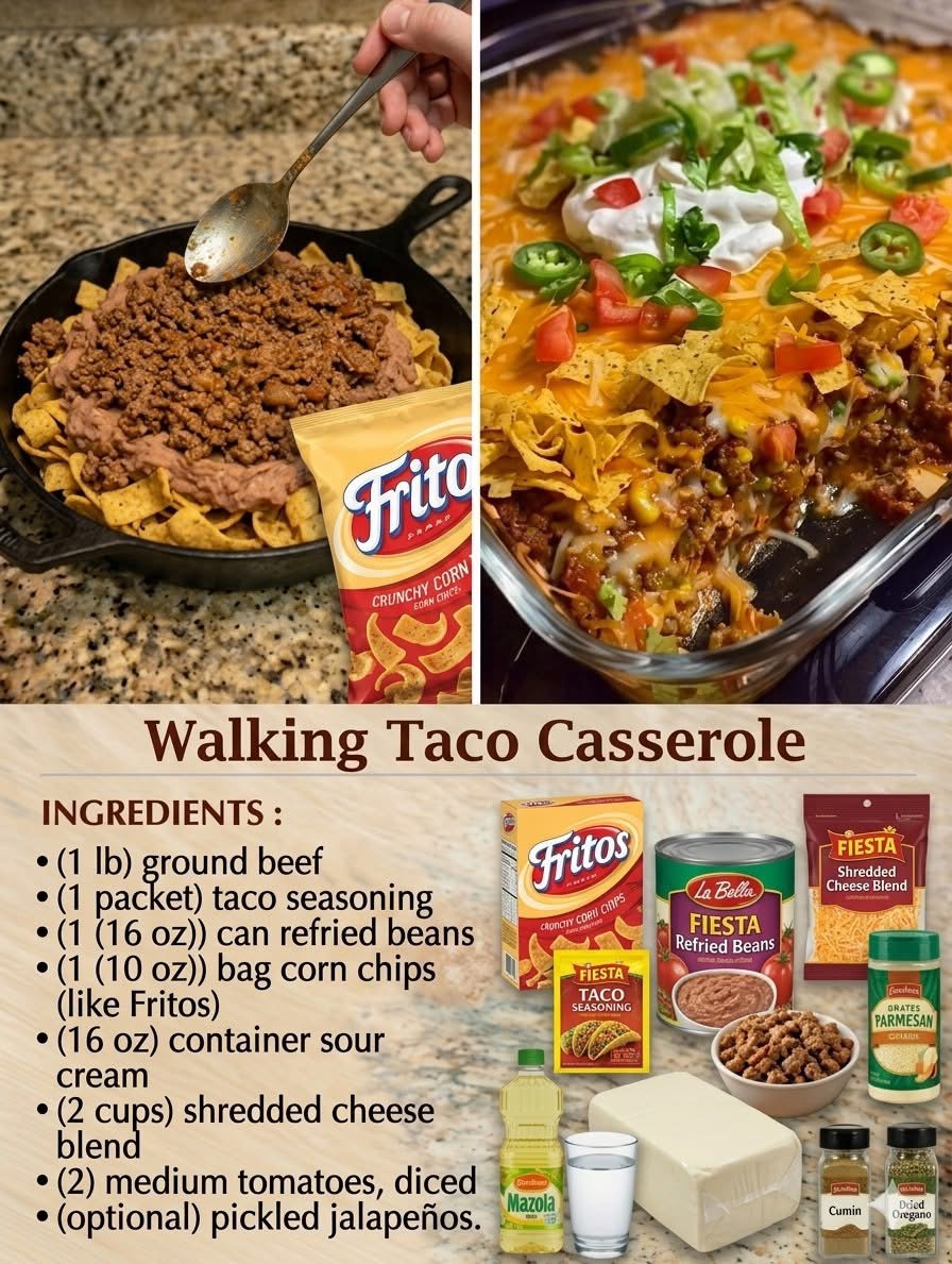 This easy casserole turns the fun flavors of walking tacos into a warm, cheesy baked dish. It’s quick to prepare, satisfying, and perfect for busy nights or casual gatherings.